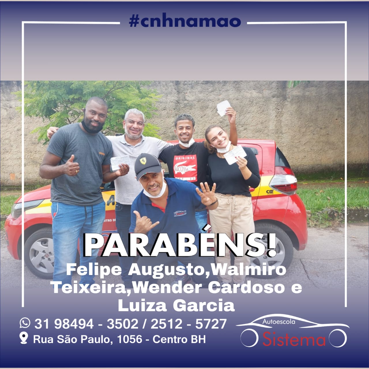 Grata a vocês por tudo! Por toda atenção, desde o início. E agradeço também ao Rafael. Ele sempre foi muito atencioso, paciente e dedicado comigo. Nunca reclamou de ter que me ensinar as mesmas coisas mil vezes (kkkkkk). Indico muito a Autoescola Sistema! Obrigada por tudo!